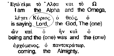 "I am the Alpha and the Omega" says Kyrios God, "the One who is and who was and who is coming, the Almighty."
