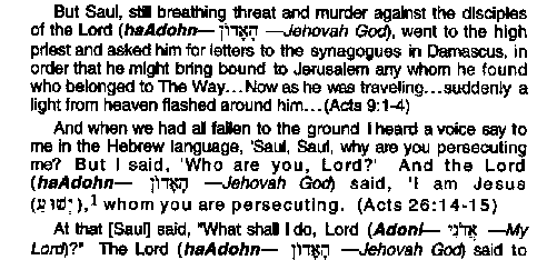 Yet, when we examine at least two of these Trinitarian Hebrew versions, we discover just the opposite. We discover that these Hebrew translators are using common constructions and vocabularies in modern Hebrew to achieve an entirely different objective. They are clearly attempting to identify Jesus with Jehovah. For example, consider one verse we have already seen.