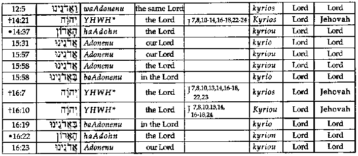| יהוה occurrences* at Kyrios verses in J17 | 8 | |