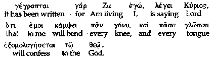But when the Apostle Paul quoted these verses at Romans 14:11 according to the Kingdom Interlinear Translation Greek text, he attributed the quotation to the Lord. The passage appears as follows in both Greek and English in the Kingdom Interlinear Translation: