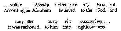 Galatians 3: 6 from the Kingdom Interlinear Translation showing both the Greek text and the English translation reads: