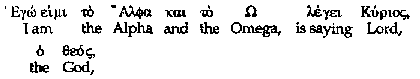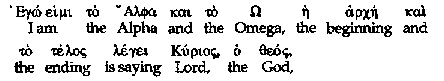 However, from other ancient Greek manuscripts, we discover that there are at least two additional possible wordings for this verse. (As we will see, the readings are merely restatements of "Alpha…Omega," and present no theological difficulties.)